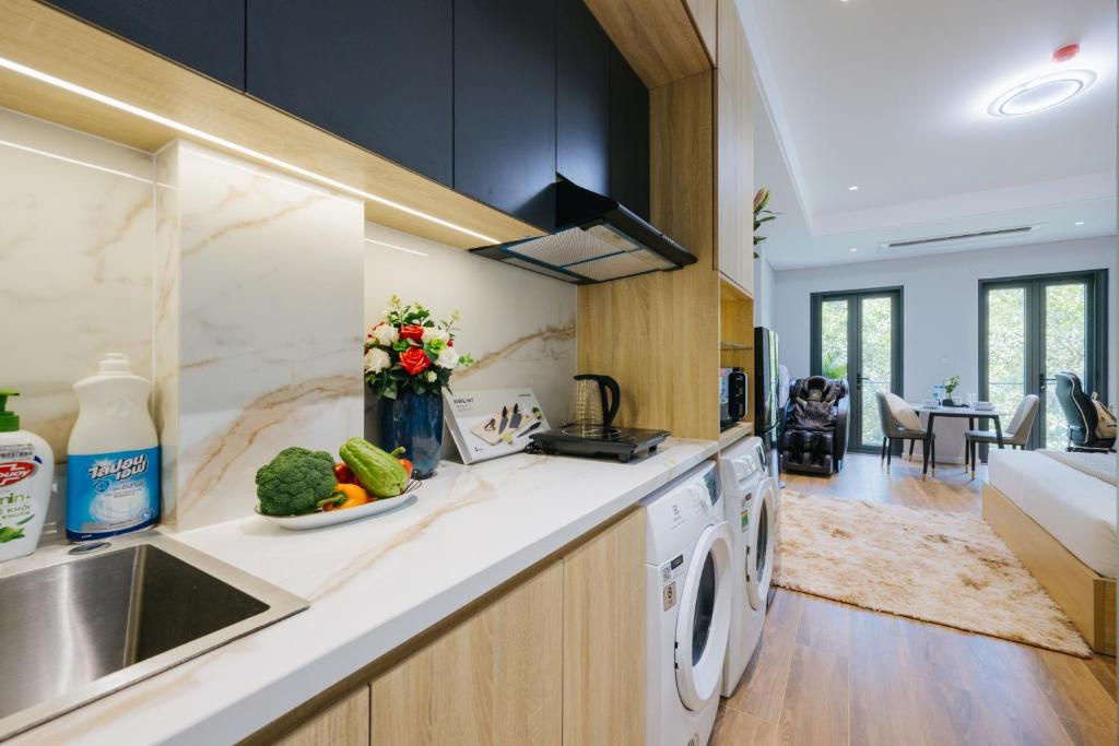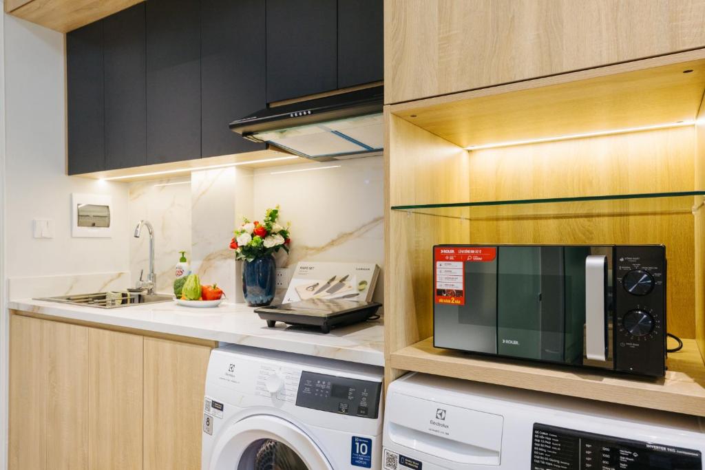Một trong những điểm đặc biệt của Madison Urban Stay so với nhiều khách sạn khác chính là bếp được trang bị đầy đủ. Du khách sẽ tìm thấy tủ lạnh, lò vi sóng, lò nướng, ấm đun nước và dụng cụ nấu ăn – tất cả đều sẵn sàng cho một bữa ăn ấm cúng ngay tại phòng. Điều này cực kỳ thuận tiện đối với các gia đình nhỏ, khách lưu trú dài ngày hoặc những ai muốn trải nghiệm ẩm thực Hà Nội theo cách riêng của mình.