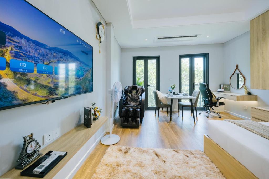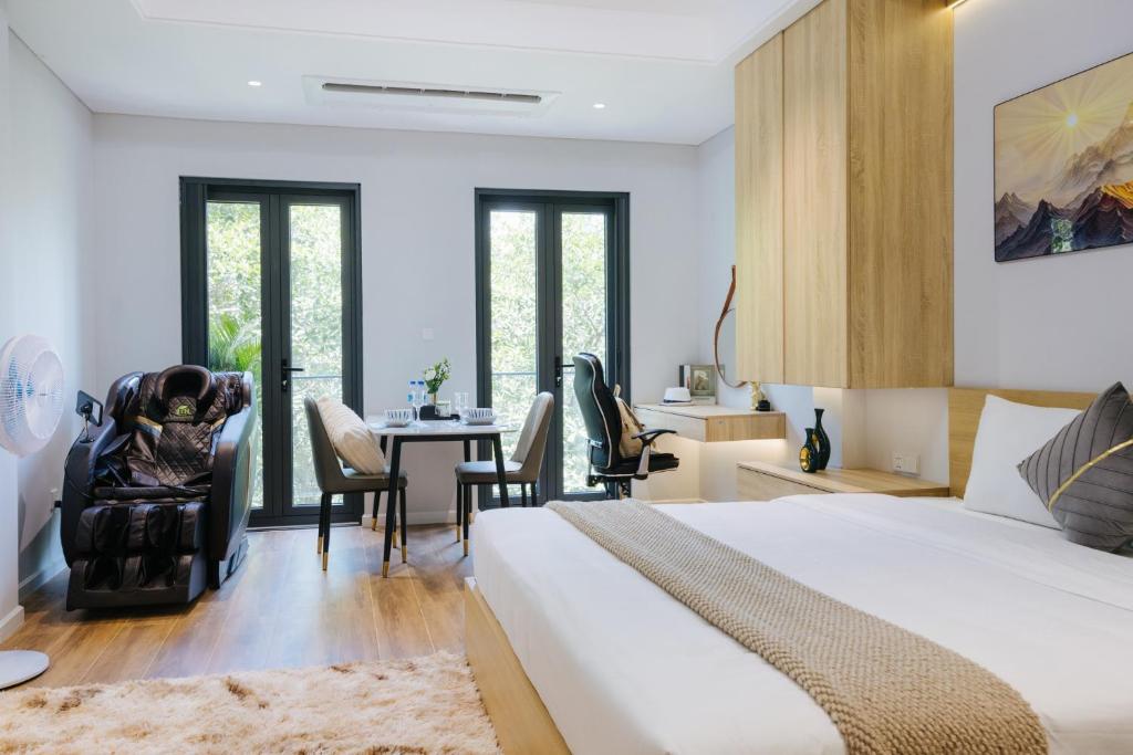 Bước vào không gian phòng, du khách sẽ cảm nhận ngay sự tiện nghi vượt trội. Khu vực ghế ngồi rộng rãi được sắp xếp hợp lý, là nơi bạn có thể thư giãn, đọc sách hay trò chuyện cùng người thân. TV màn hình phẳng với các kênh truyền hình quốc tế sẵn sàng đáp ứng nhu cầu giải trí tại phòng.