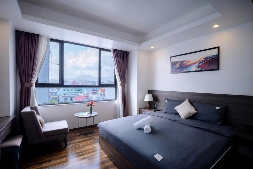🛌 Mỗi phòng nghỉ đều được thiết kế đầy đủ tiện nghi với máy lạnh, TV màn hình phẳng, ấm đun nướcphòng tắm riêng hiện đại. Một số phòng còn có view thành phố ấn tượng, mang đến những khoảnh khắc ngắm cảnh thư thái từ chính phòng nghỉ của bạn.